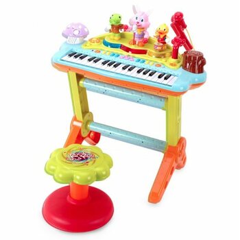 Descriere: Jucăria de învățământ Huile Toys «Pianul electronic» este o jucărie multifuncțională cu care copilul poate dezvolta abilități muzicale. Pianul este montat pe suport, kitul are și un scaun înalt. Cu ajutorul unui microfon, însoțit de un ansamblu vesel de prieteni de pădure, bebelușul va putea să cânte și să înregistreze capodoperele muzicale. Jucăria este echipată cu două moduri de redare a muzicii, trei moduri de a învăța să cânte la pian, și există 8 stiluri muzicale diferite și 22 de melodii de ales. Folosind pianul electronic, copilul va putea dezvolta următoarele abilități: percepția culorilor; percepția sunetelor; abilități motorii fine; coordonarea mișcărilor și a urechilor pentru muzică.