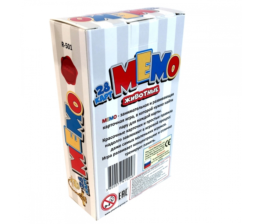 Мемо – занимательная и развивающая карточная игра, в которой нужно найти пару для каждой карты. Красочные карточки и простые правила надолго завлекают в игровой процесс даже самых маленьких игроков. Игра предназначена для детей от 3-х лет. В неё можно играть от 2-6 игроков.Мемо. Живо...