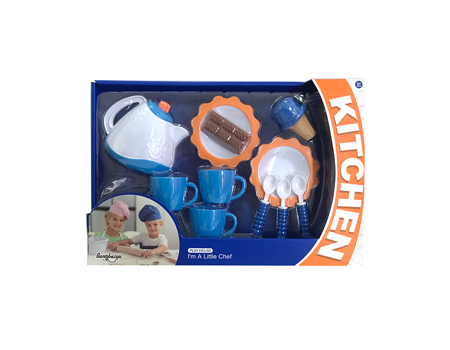 Набор детской посуды с чашками, чайником и другими полезными приборами. Выполнен из высококачественных материалов с использованием не токсичных красок.