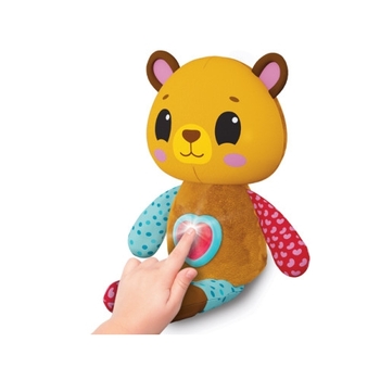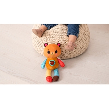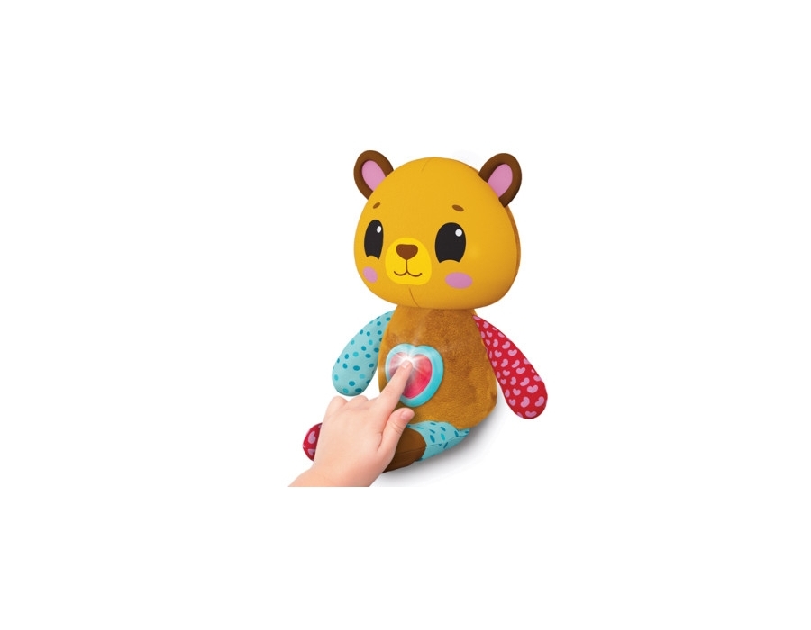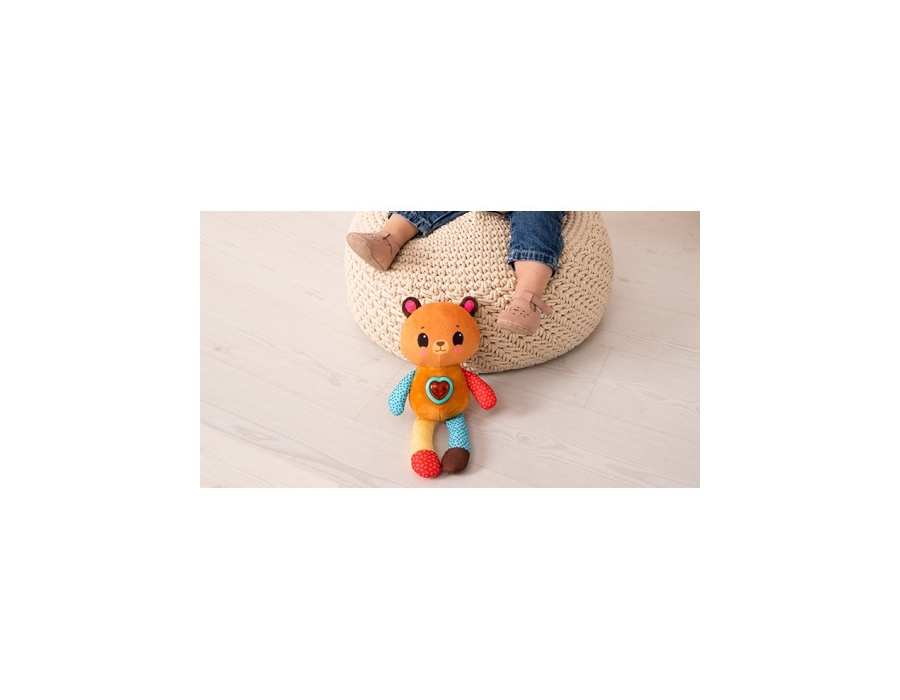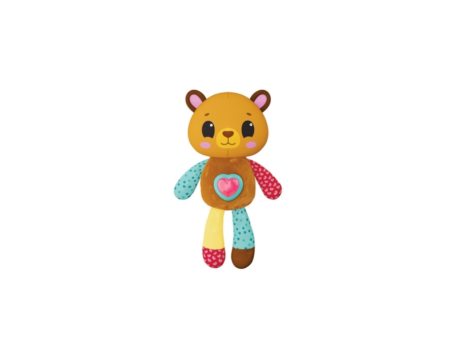 Acest ursuleț de pluș colorat cu o inimă strălucitoare este o jucărie minunată pe care o poți lua cu tine oriunde! Micuțul tău va fi captivat de varietatea de sunete plăcute și melodii populare, precum și de lumina puternică a butonului luminos care clipește în ritmul muzicii! Această jucărie de pluș cu urechi foșnitoare și modele luminoase va atinge cu siguranță toate simțurile unui bebeluș care abia începe să exploreze lumea!