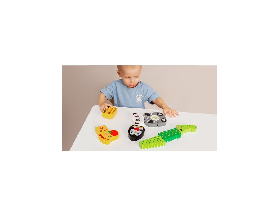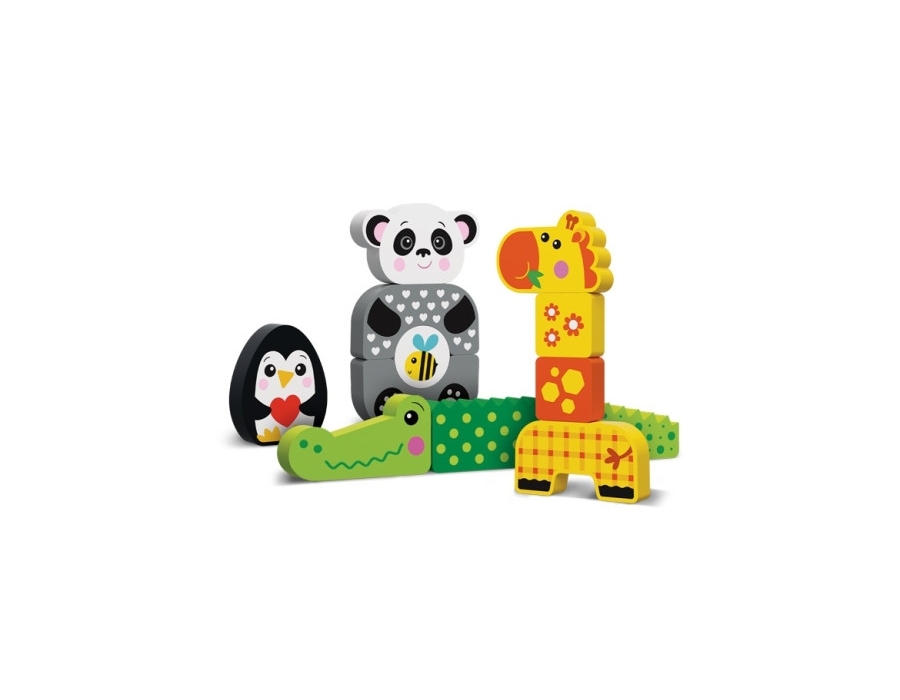 Setul de blocuri de construcție Panda și Prieteni este jucăria perfectă pentru ore întregi de joacă creativă! Copiii pot folosi blocuri colorate într-o varietate de forme pentru a-și construi propria grădină zoologică. O girafă prietenoasă, un panda drăguț, un pinguin pufos și un crocodil flămând sunt personaje vibrante, ușor de stivuit și distractive de jucat - pur și simplu lasă-ți imaginația să zburde! Cu aceste minunate blocuri de lemn, copiii pot învăța culori și forme și își pot aprofunda cunoștințele timpurii. În plus, este o activitate excelentă pentru dezvoltarea abilităților motorii fine! Distracție plăcută!