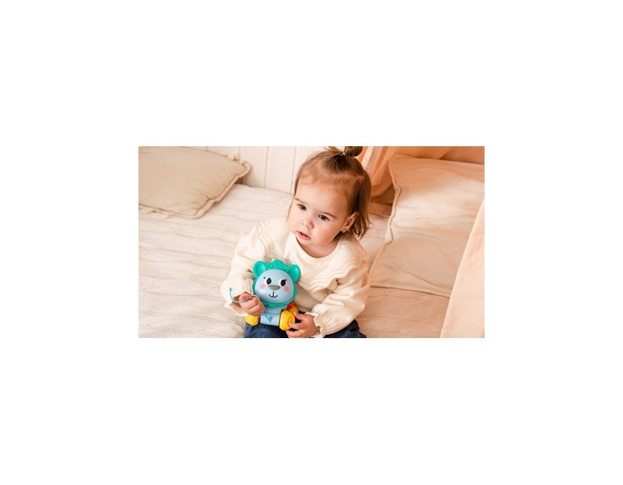 Jucăriile de împins și tras oferă copiilor o oportunitate minunată de a experimenta senzații interesante! Pe măsură ce învață să se joace cu această lamă vibrantă, cei mici vor apuca și se vor rostogoli, se vor târî și vor merge, dezvoltându-și echilibrul și coordonarea. Mecanismul cu clichet și inserția tactilă dezvoltă noi abilități senzoriale și motricitate fină, stimulându-le în același timp creativitatea.