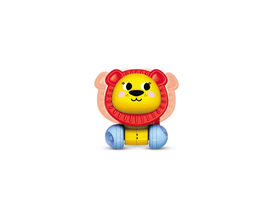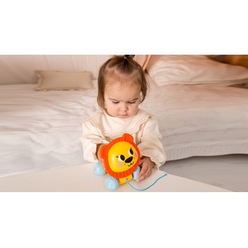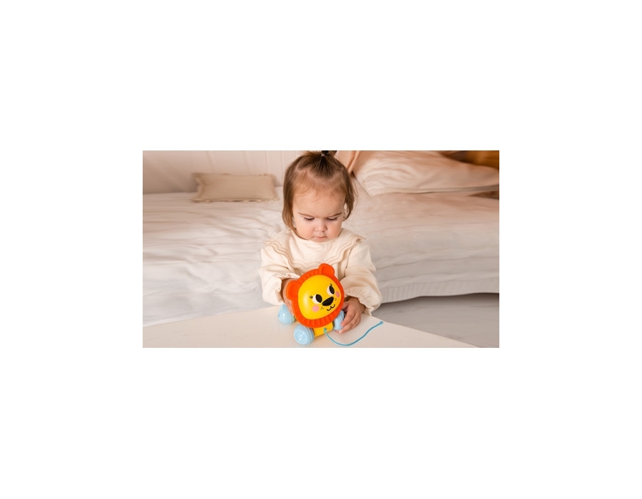 Jucându-se cu acest Leu vibrant, copiii sunt cufundați într-o joacă captivantă, plină de imaginație și descoperire! Trăgând de sfoară, jucăria devine un companion pentru cei mici în timp ce își explorează împrejurimile. Datorită roților de inerție, Puiul de Leu poate accelera și se poate deplasa pe rute neașteptate. Rotindu-și capul în timp ce se mișcă, Puiul de Leu îi captivează pe cei mici și îi încurajează să se târască și să meargă, să efectueze exerciții de coordonare motorie și să învețe indicații!