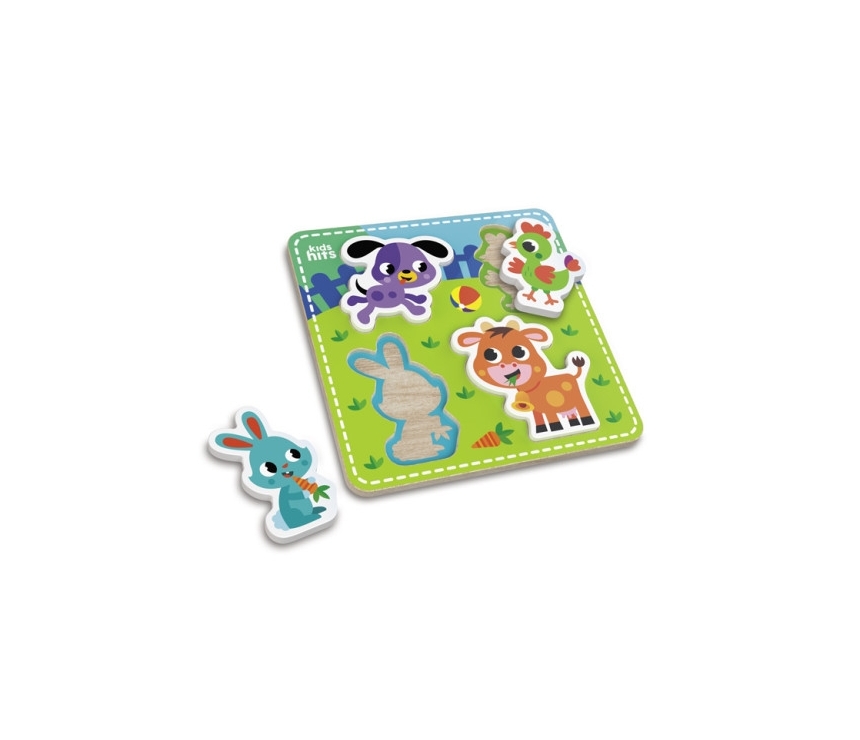 Kids Hits KH20/034 Деревянные пазлы Farm QuartetJocul de puzzle din lemn Farm Quartet este un joc de puzzle minunat, cu o imagine a fermei ilustrată viu și patru figurine de animale care trebuie introduse în sloturile de pe terenul de joc. În timp ce asamblează puzzle-ul, copilul trebuie să recunoască formele animalelor și să găsească celulele corespunzătoare. Contururile colorate din sloturi ajută la determinarea locului în care se potrivesc toate figurinele. Sortând și selectând piesele puzzle-ului, copiii le apucă, le orientează și le rotesc, ceea ce face din joc un exercițiu excelent pentru dezvoltarea abilităților motorii fine. În timp ce se joacă, copiii își antrenează concentrarea și își dezvoltă memoria și, de asemenea, primesc un impuls uriaș de încredere în sine după ce finalizează cu succes sarcina.