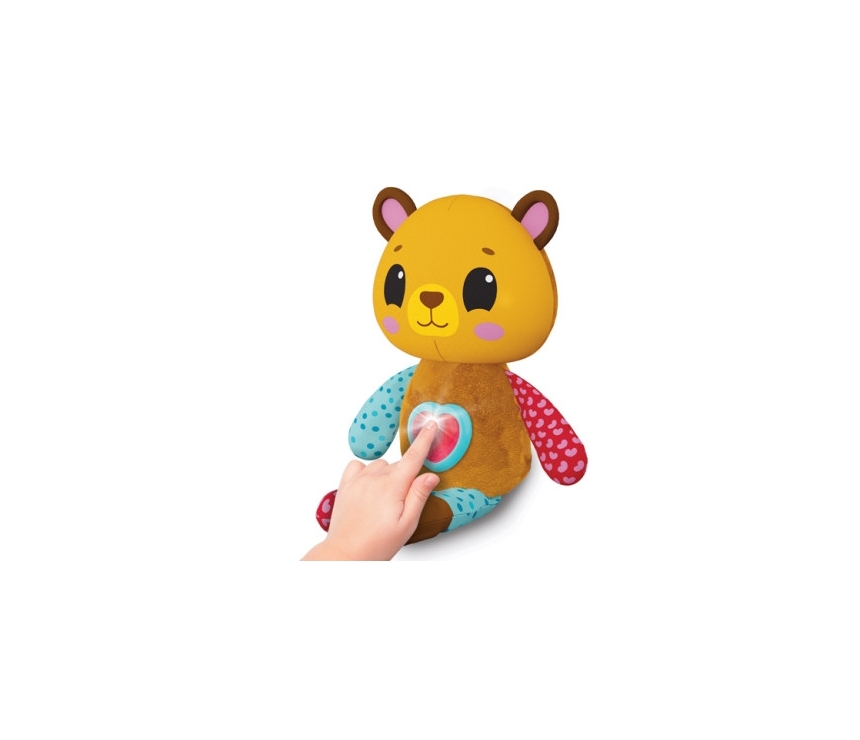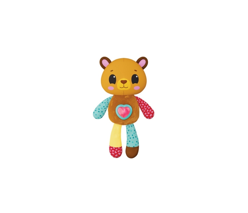 Acest ursuleț de pluș colorat cu o inimă strălucitoare este o jucărie minunată pe care o poți lua cu tine oriunde! Micuțul tău va fi captivat de varietatea de sunete plăcute și melodii populare, precum și de lumina puternică a butonului luminos care clipește în ritmul muzicii! Această jucărie de pluș cu urechi foșnitoare și modele luminoase va atinge cu siguranță toate simțurile unui bebeluș care abia începe să exploreze lumea!